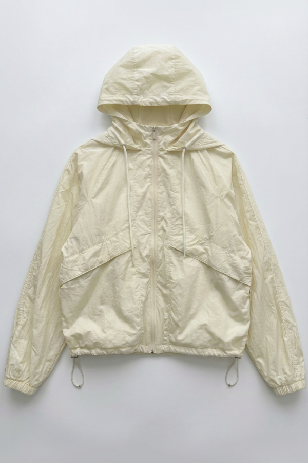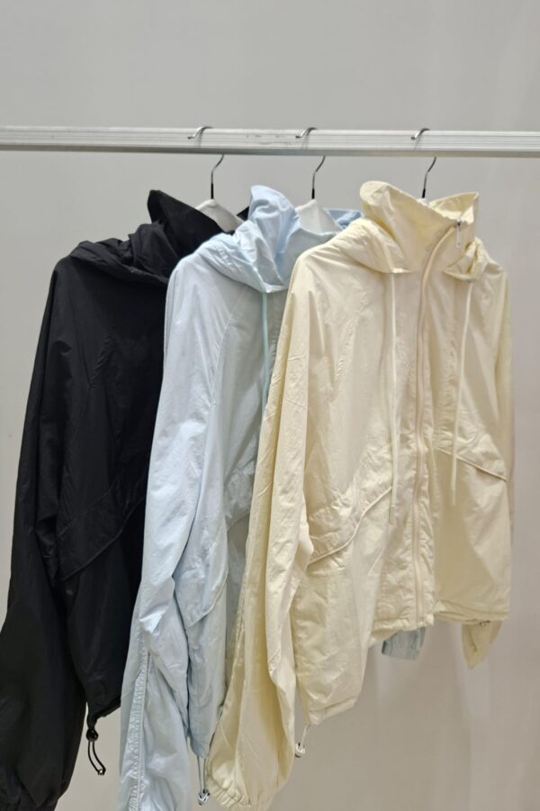 Campera de cuello subido con capucha ajustable. Manga larga acabada en elastico. Bolsillos en delantero con solapa y botón a presión. Bajo ajustable con elástico y stoppers. Cierre frontal con cierre.MEDIDAS EN PLANO