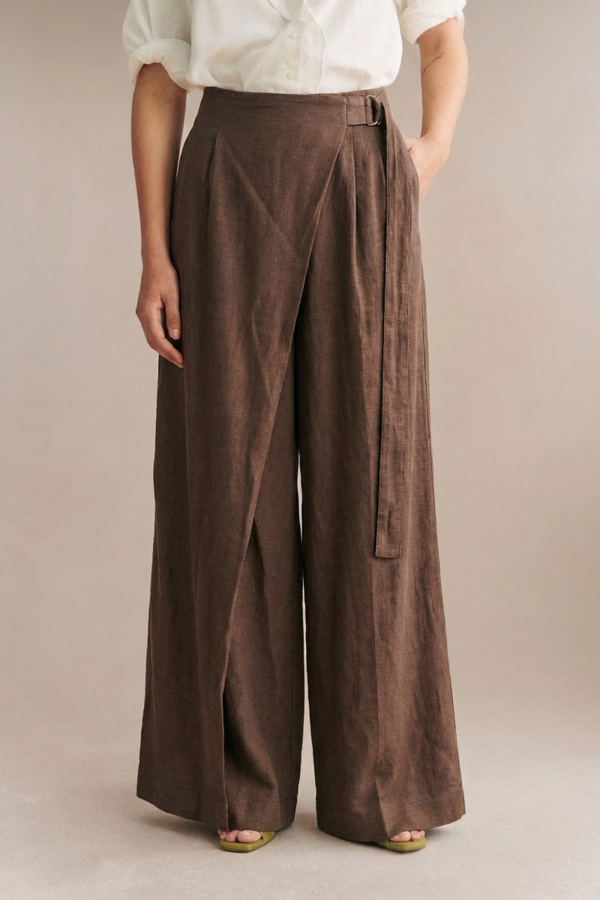 – Pantalón con tiro medio con cintura elástica. Bolsillos laterales ocultos en costura.