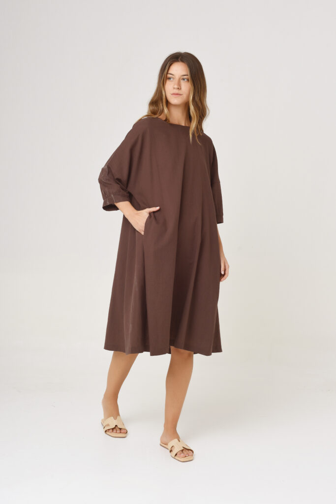 Vestido midi fluido. Cuello escote pico. Espalda escote en pico. Bolsillos laterales ocultos en costura.MEDIDAS EN PLANO