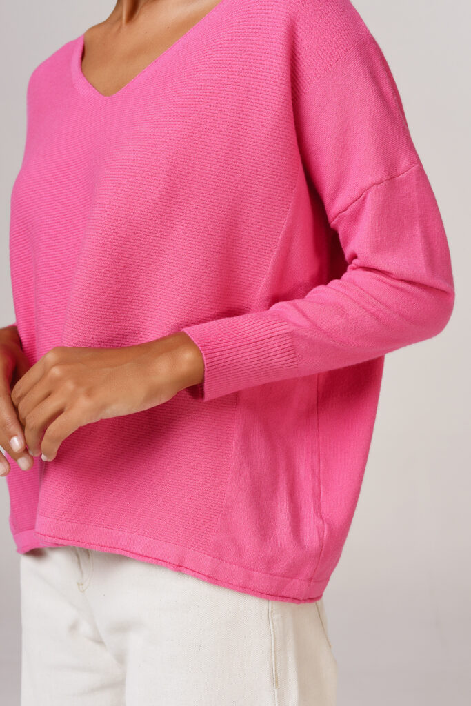 Sweater cuello V, con tajos en los costados y en la manga. Calidad: Bremer