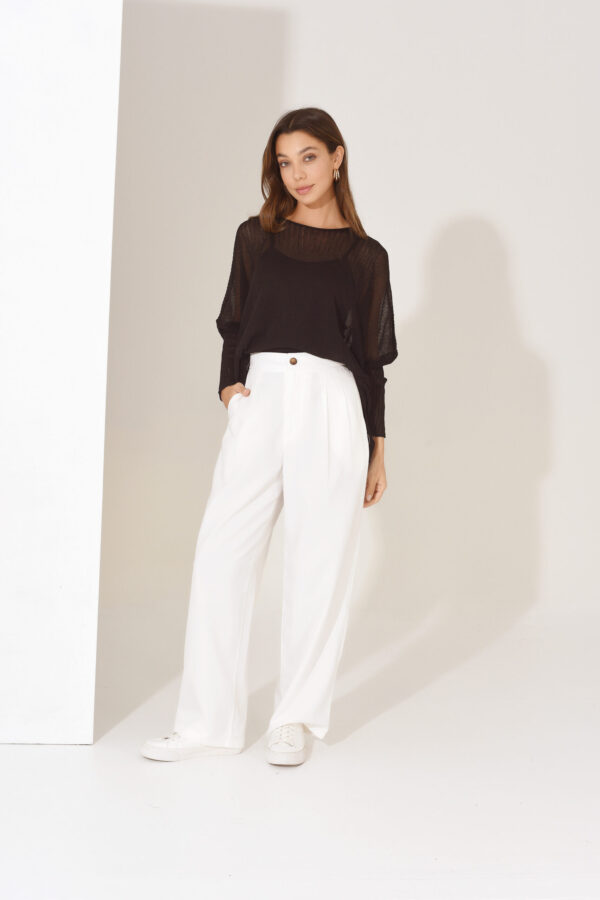 Vestido fluido midi de escote recto y tirantes finos ajustables. Detalle de puntilla combinada al tono. Cierre tipo lágrima con botón en espalda. Bajo acabado en paneles con pliegues. Bolsillos laterales ocultos en costura.