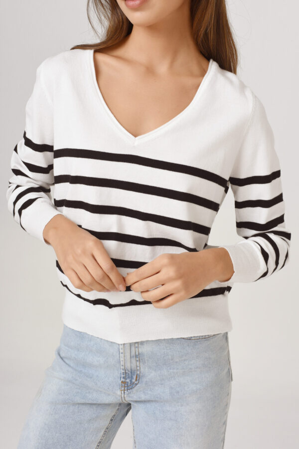 $25.000,00Sweater de hilo con lurex. Cuello en V. Manga larga. Con líneas del mismo color sin lurex.