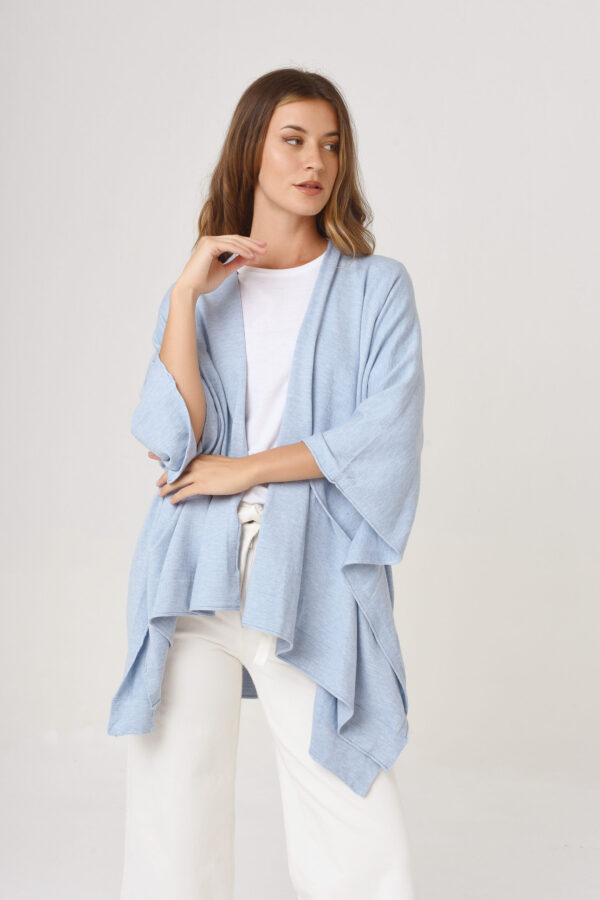 $28.000,00Poncho de hilo con lurex. Cuello redondo. Botones decorativos en los hombros. Tejido en rib.