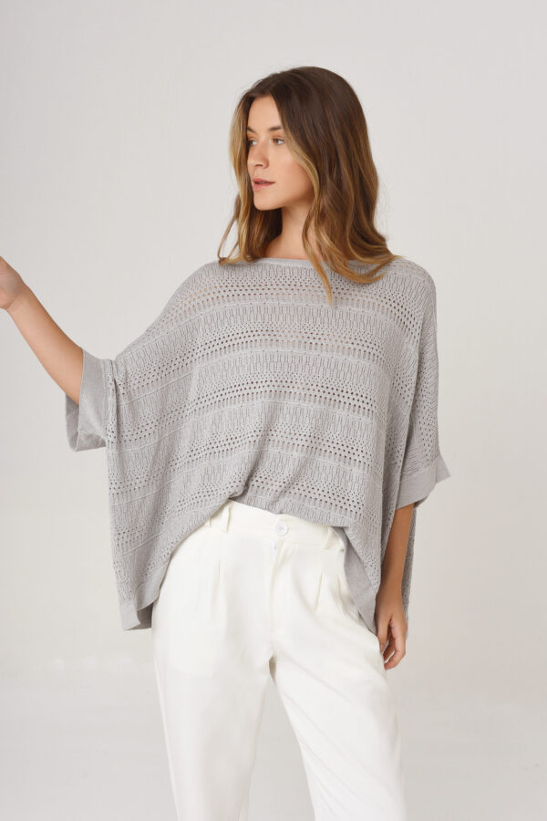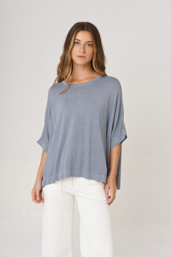 $25.000,00Sweater de hilo con lurex. Oversize manga al codo. Cuello redondo.