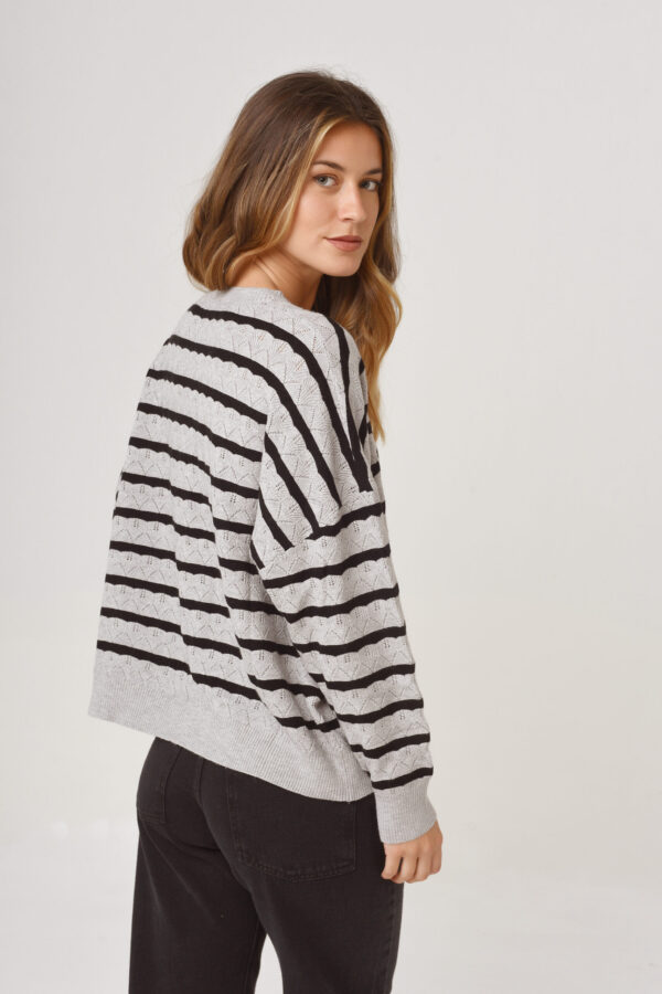 $23.000,00Sweater de hilo con lurex. Cuello redondo. Manga ranglan largo. Tejido en rib en los hombros.