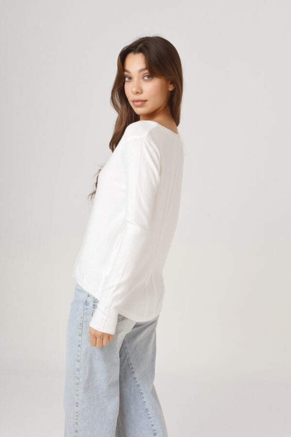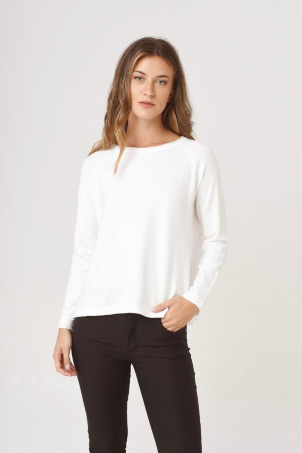 Sweater con recortes diagonales laterales, cuello redondo. Calidad: Bremer