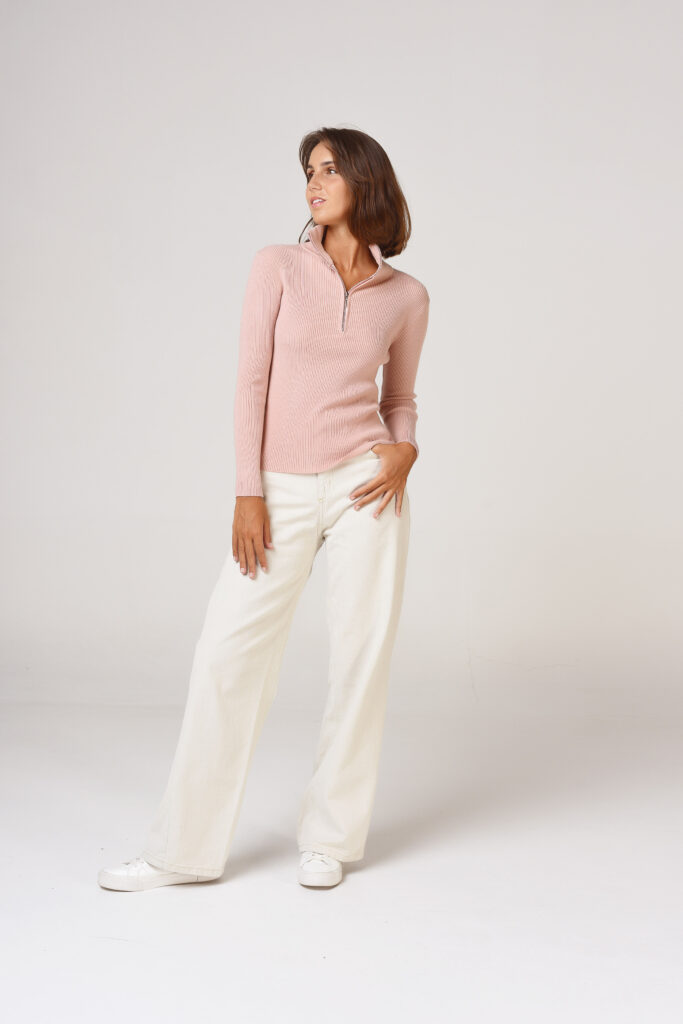 Sweater morley con cierre en cuello. Calidad: Bremer Medidas en plano Sisa 37cm Manga 51cm Largo 54cm
