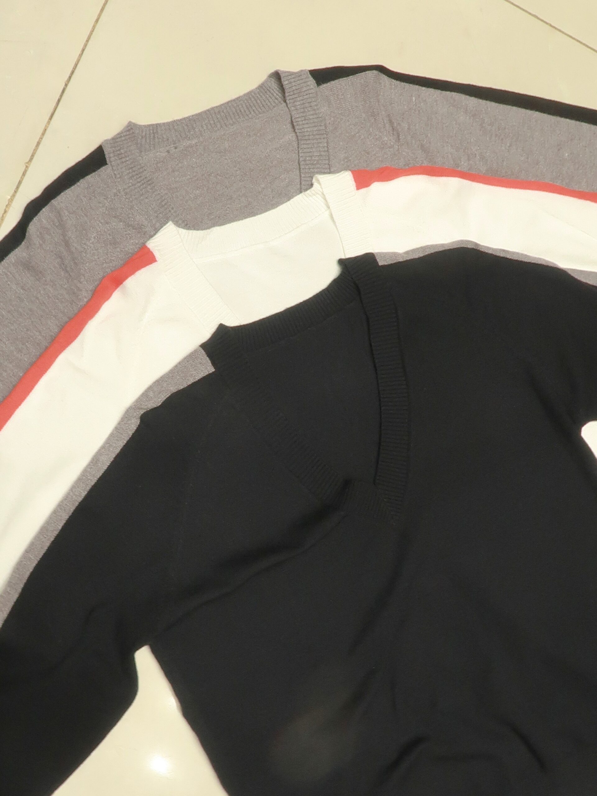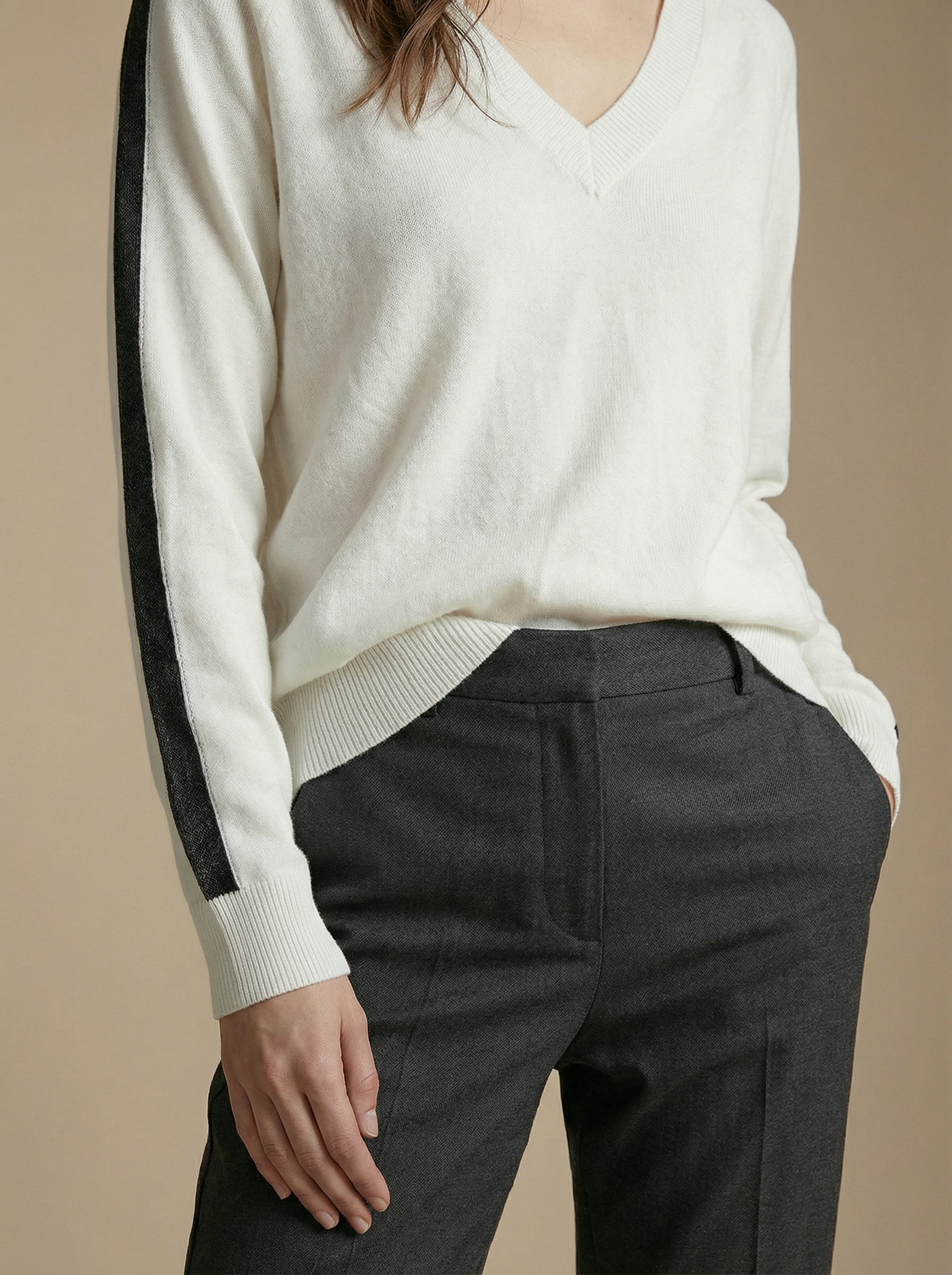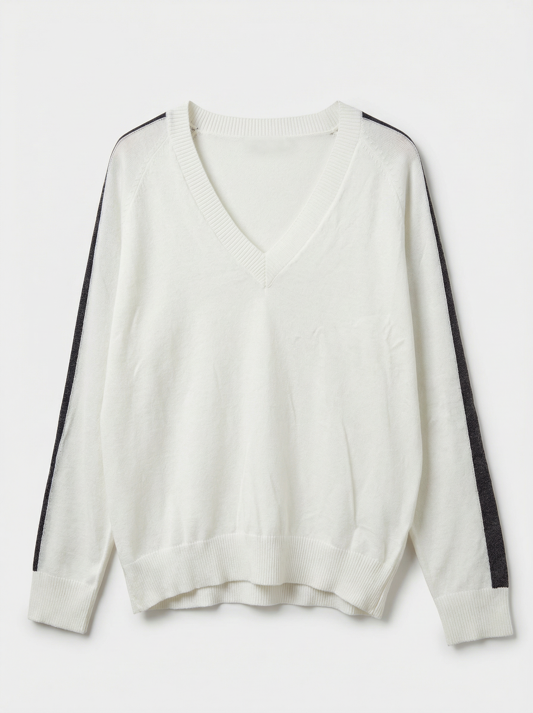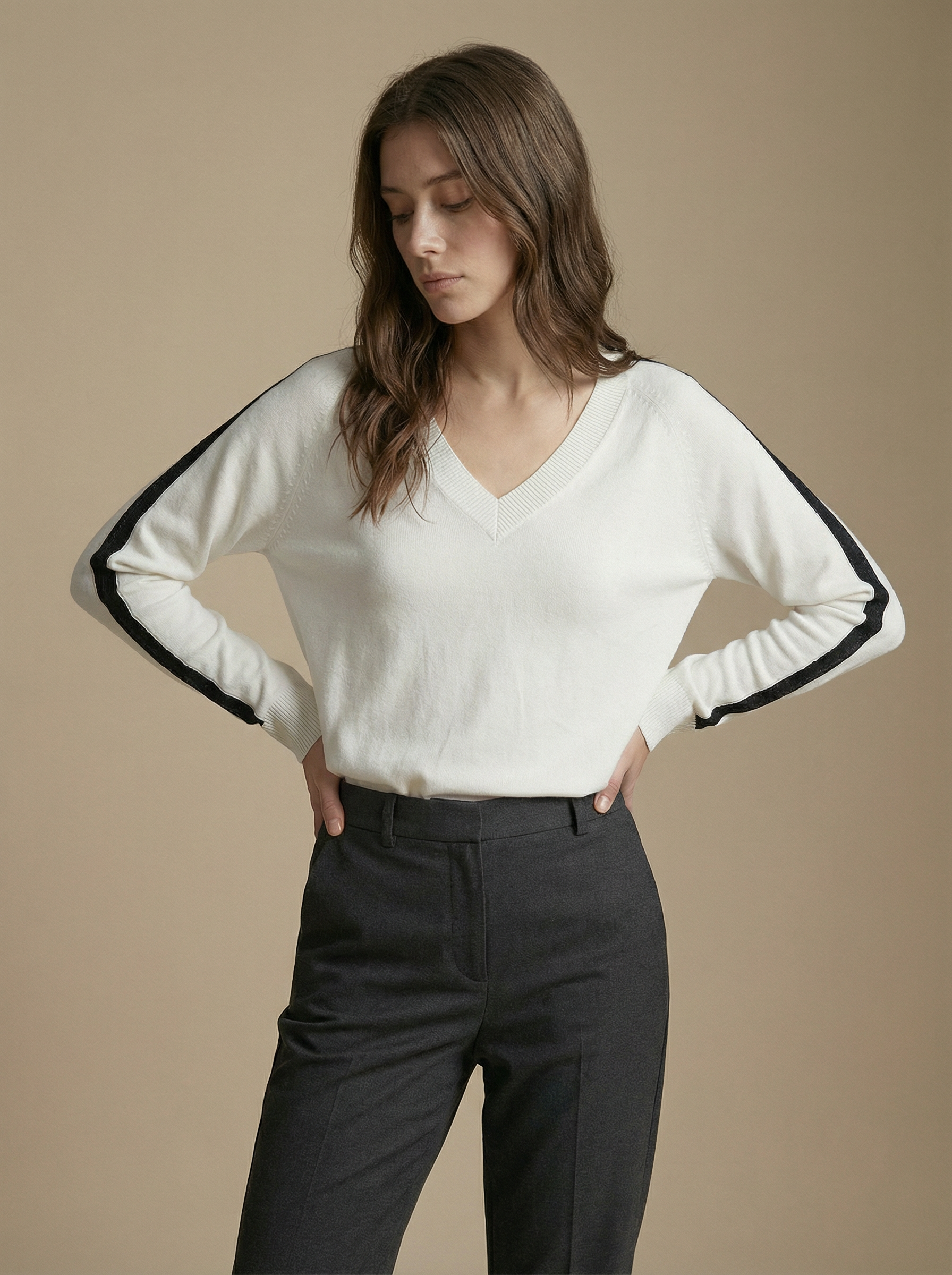 SWEATER CUELLO EN V CON LINEA EN LA MANGA A CONTRASTE