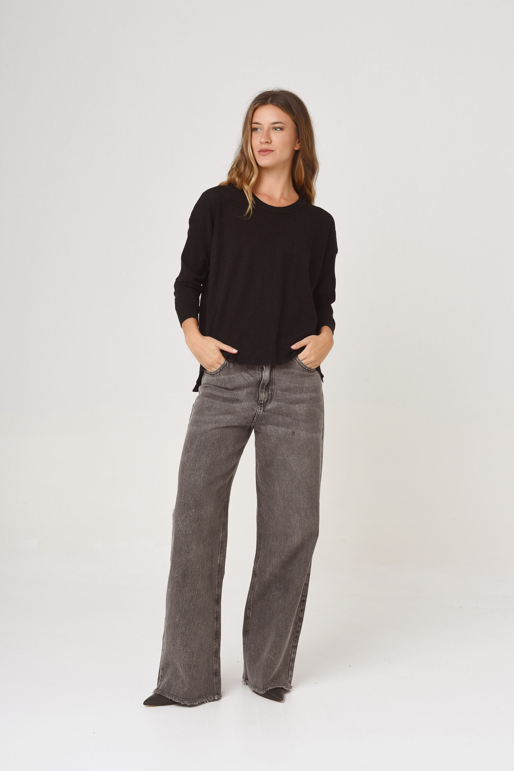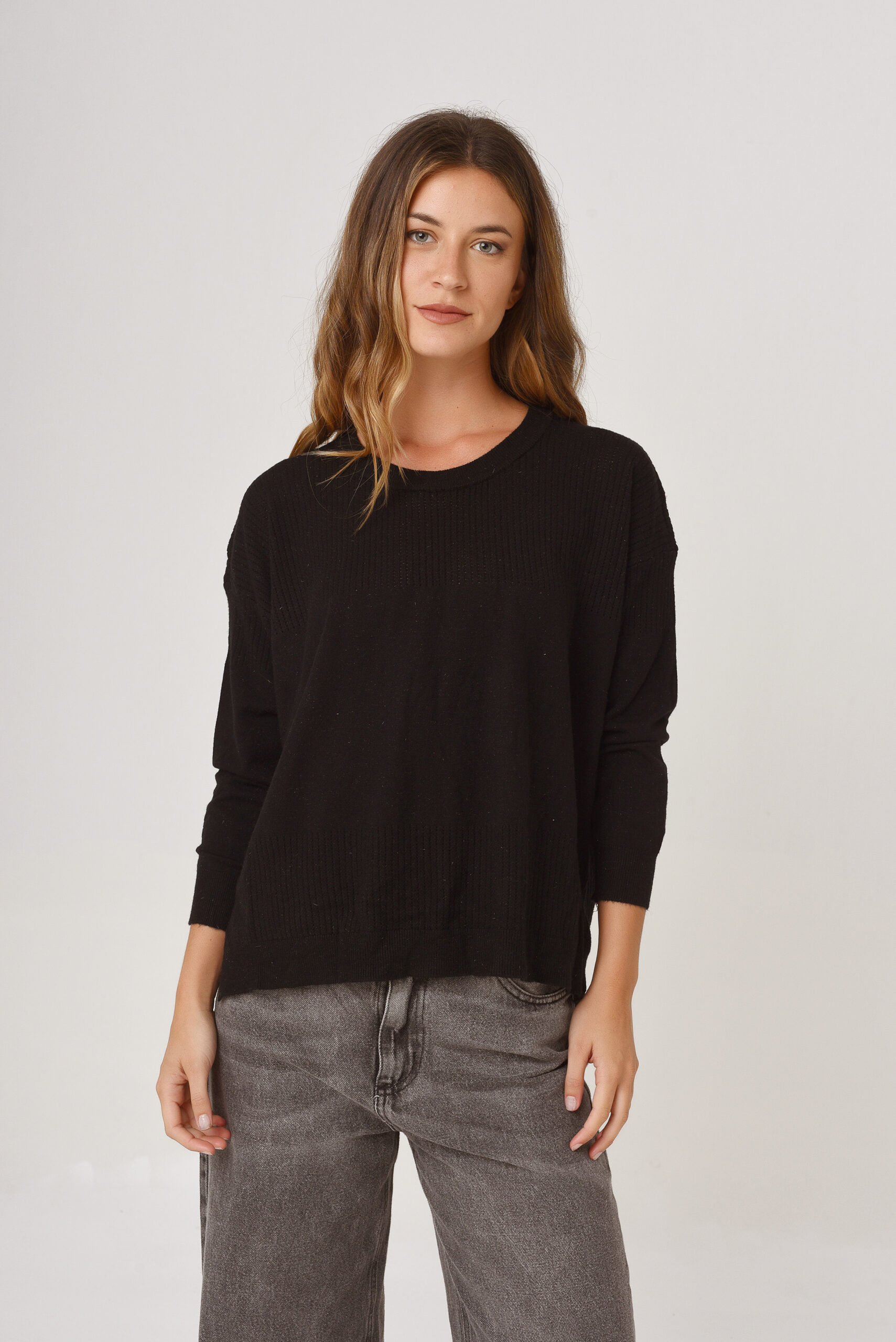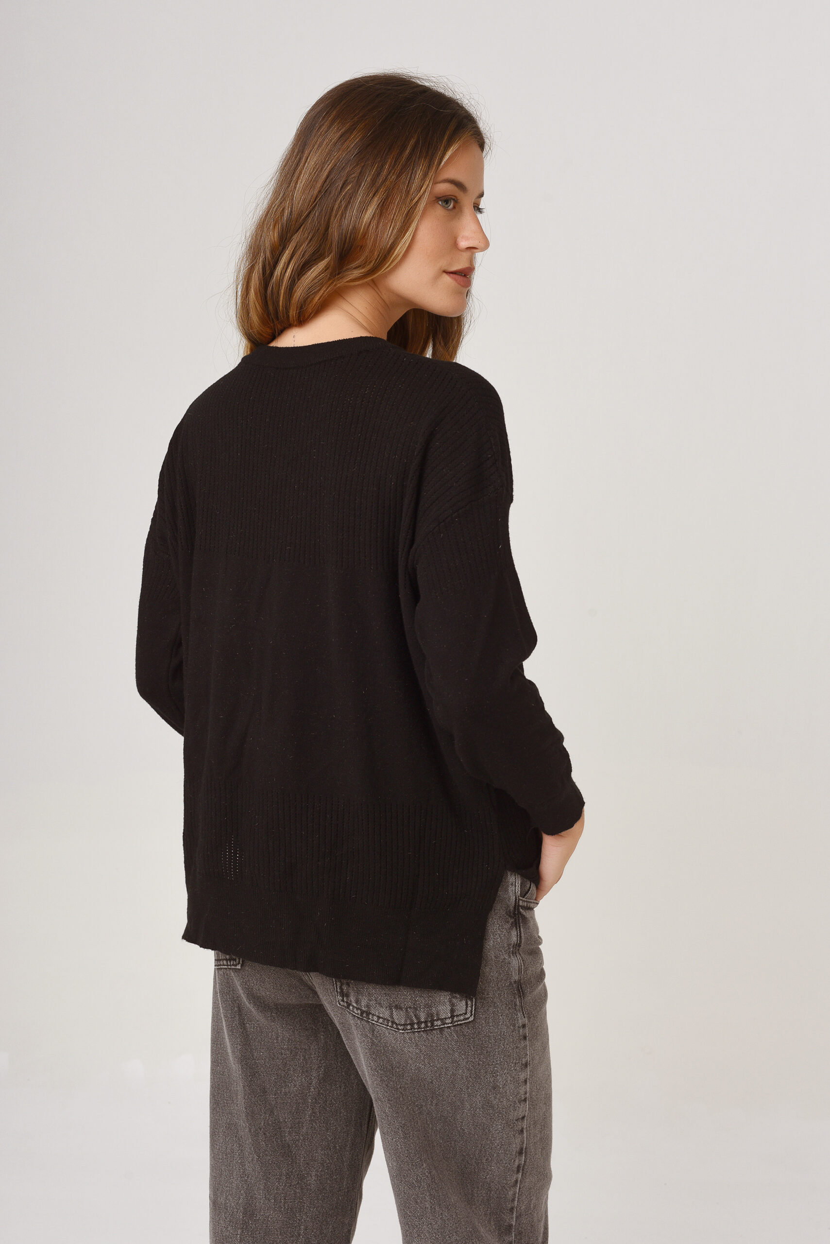Sweater de hilo de lurex. Cuello V. Tejido tramado.