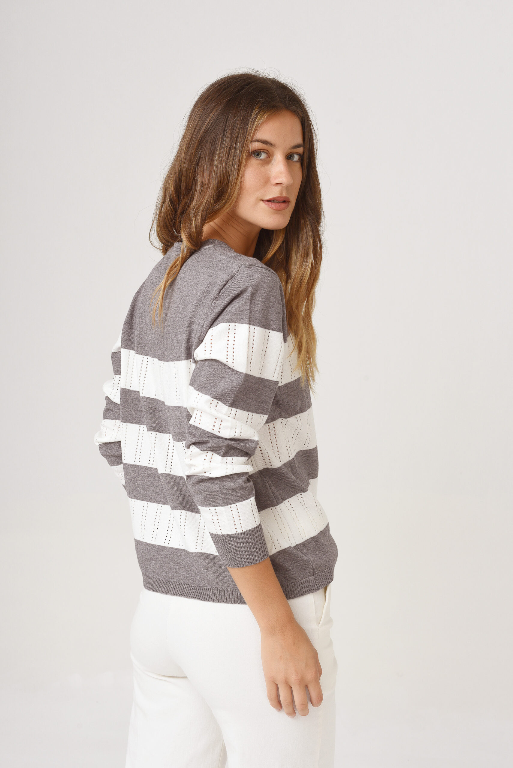 Sweater de hilo. Cuello redondo. Manga ranglan larga.