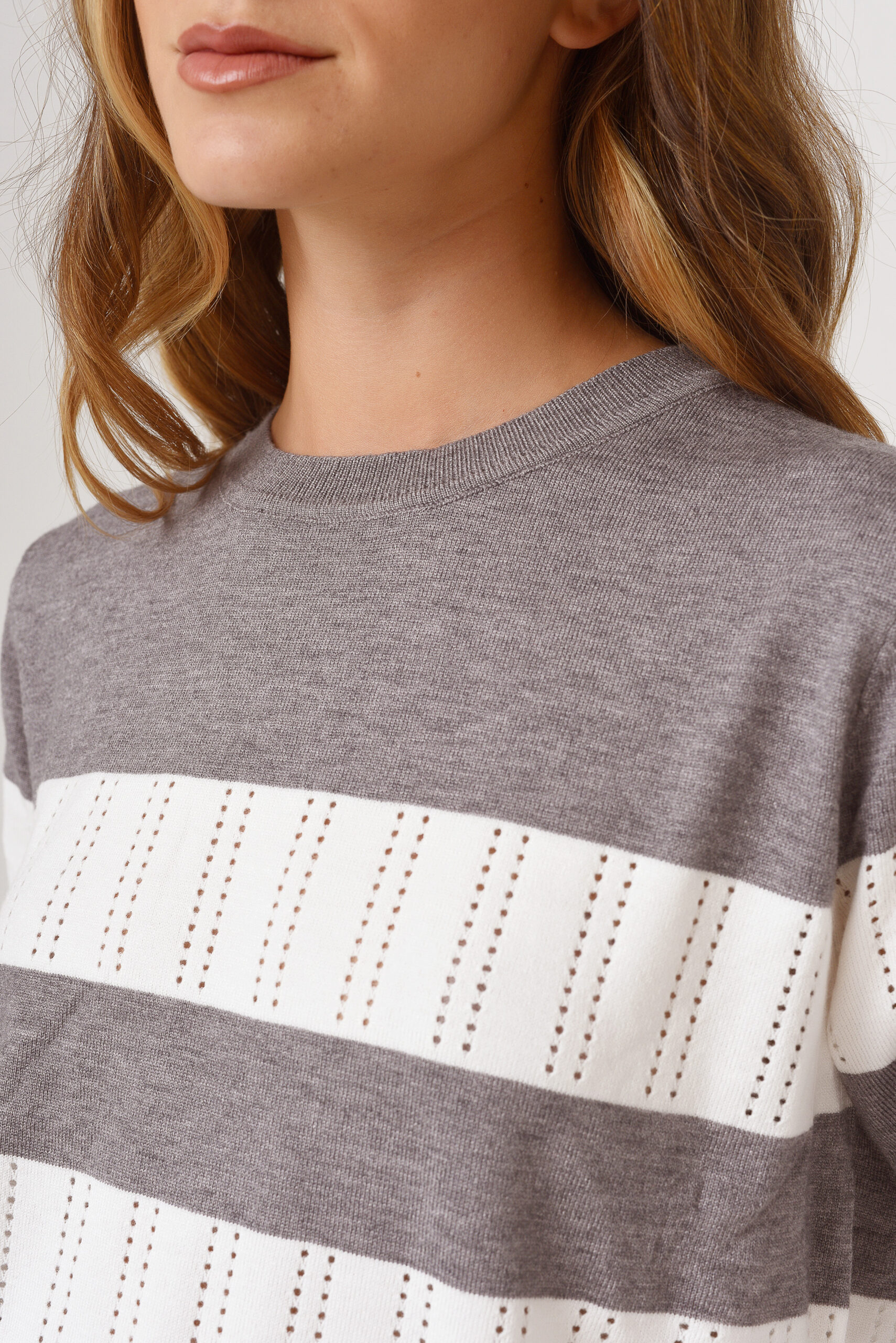 Sweater de hilo con lurex. Cuello redondo. Manga ranglan largo. Tejido en rib en los hombros.