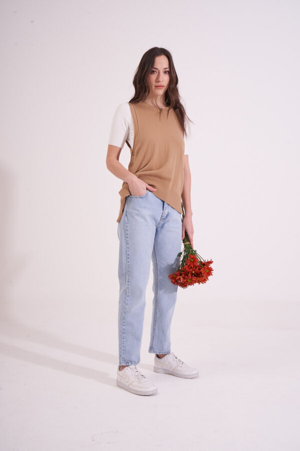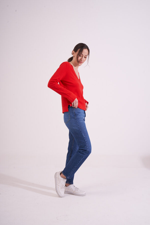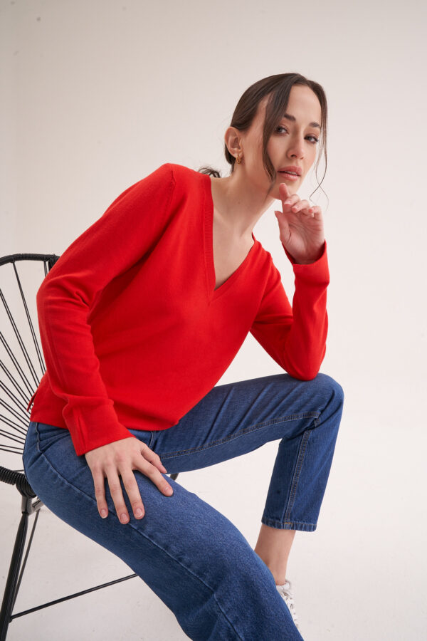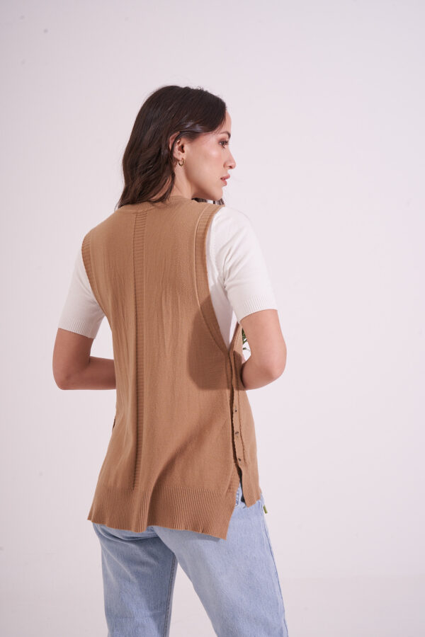 Sweater cuello V, con tajos en los costados y en la manga. Calidad: Bremer