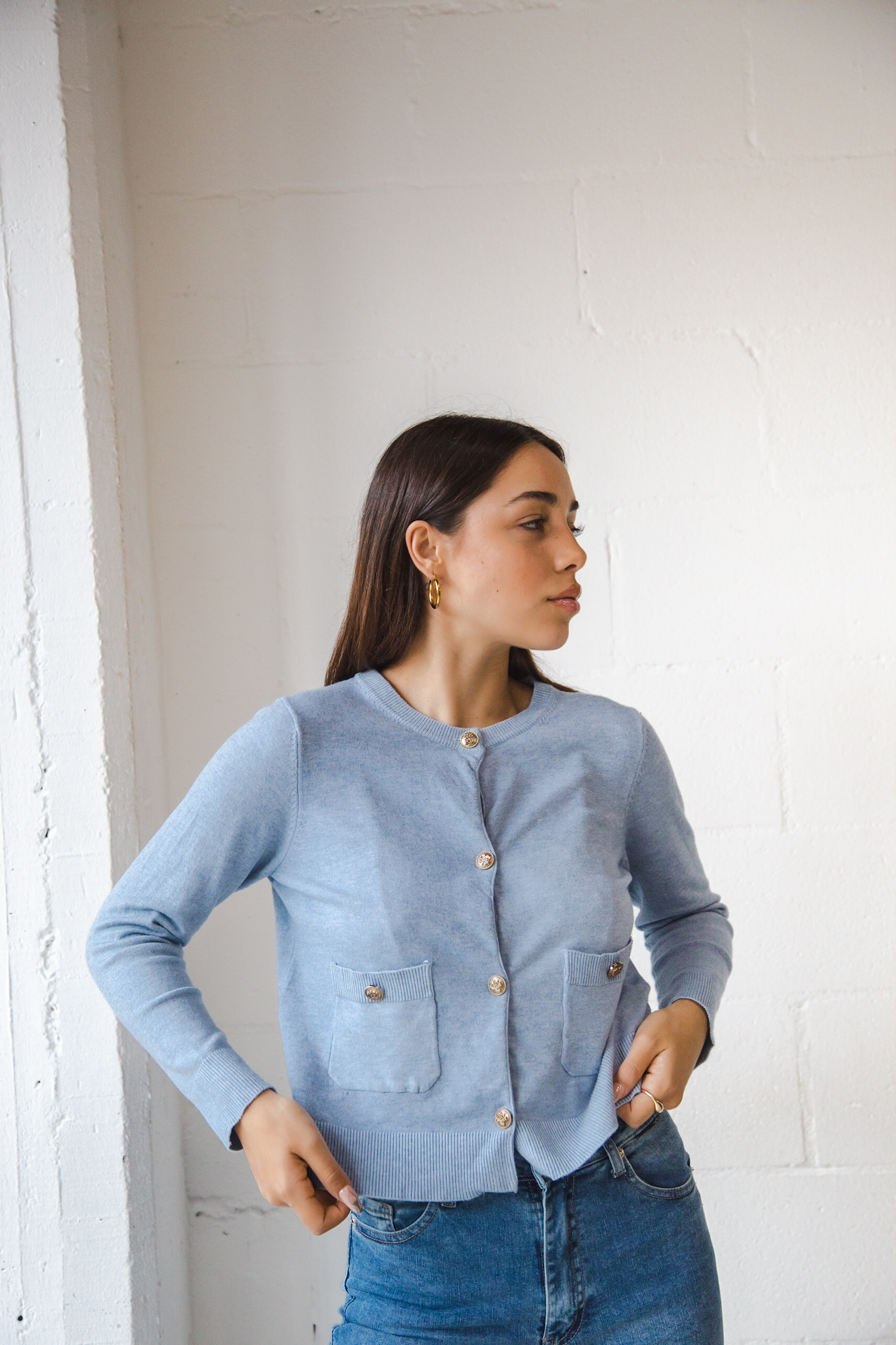 SACO CUELLO REDONDO CON BOTONES Y CON BOLSILLOS
