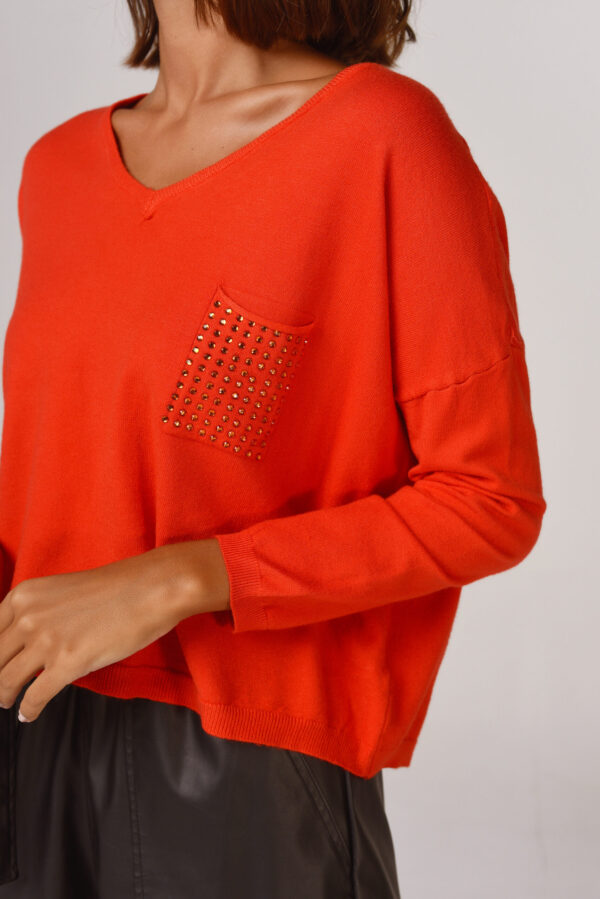 Sweater cuello V, con apliques en bolsillo Calidad: Bremer