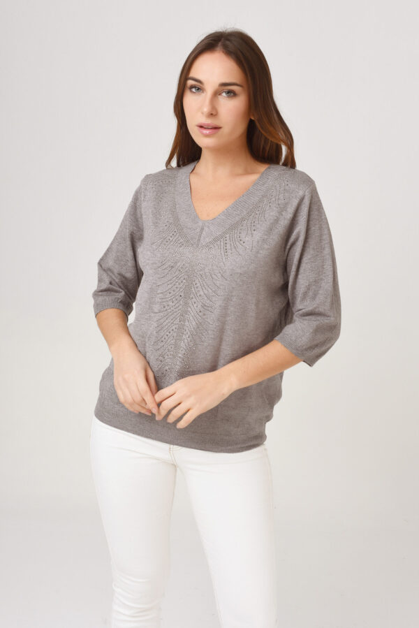 Sweater manga 3/4, strass en V Calidad: Bremer