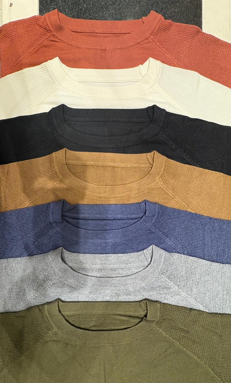 Sweater cuello redondo de manga larga. Manga con tejido calado.