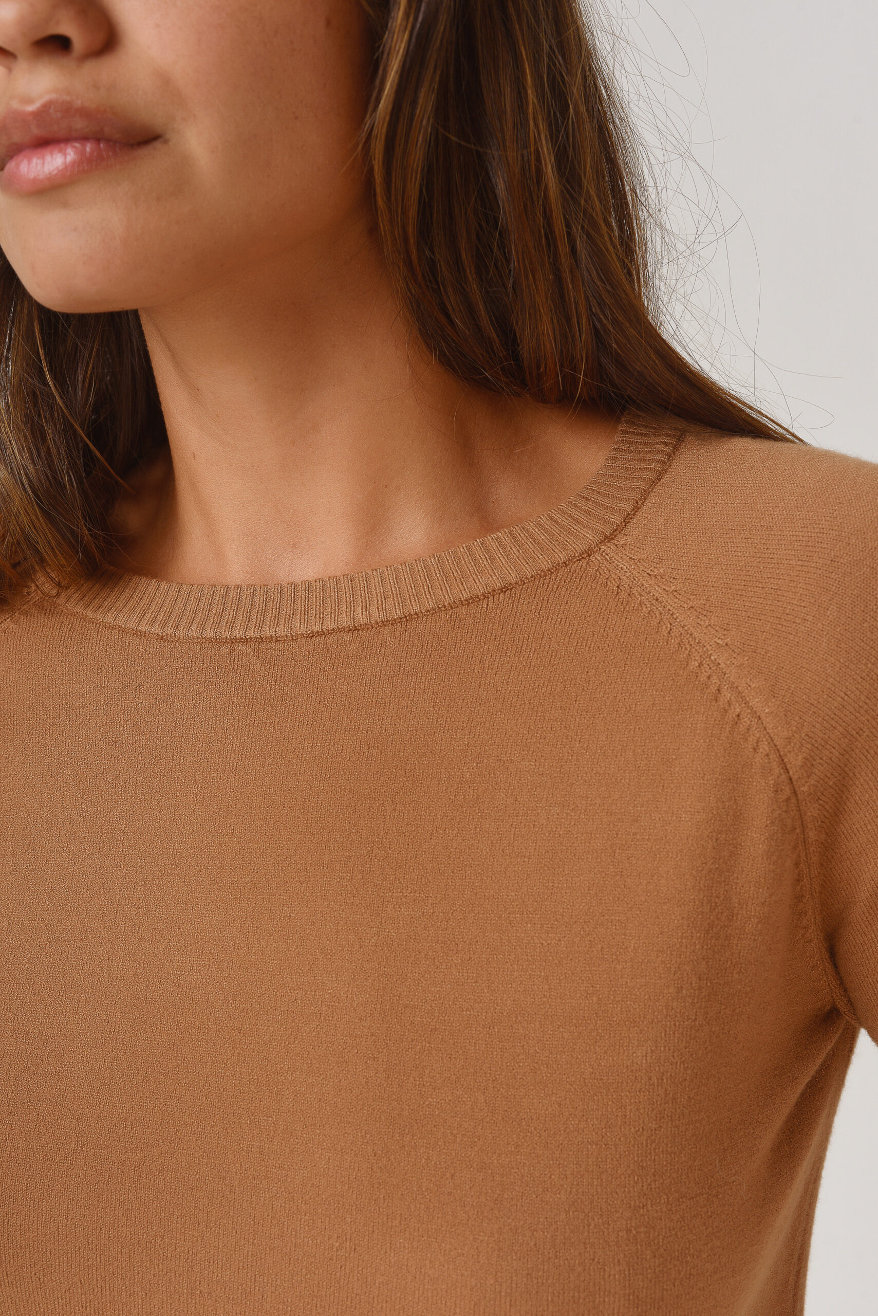 Saco de hilo con lurex. Cuello en V. Manga larga. Tejido en rib.