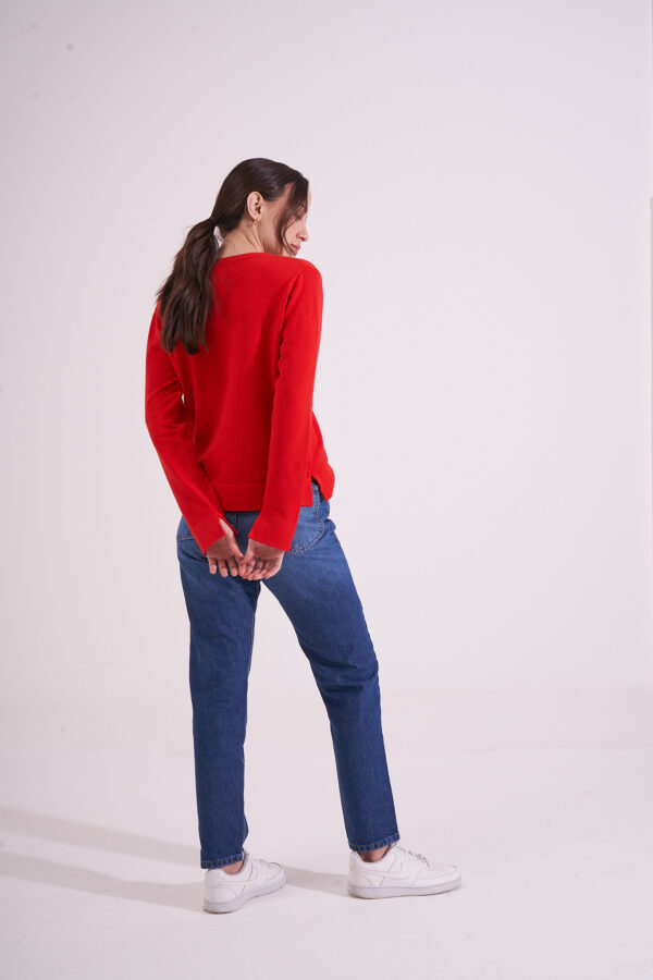 Sweater cuello V, con tajos en los costados y en la manga. Calidad: Bremer