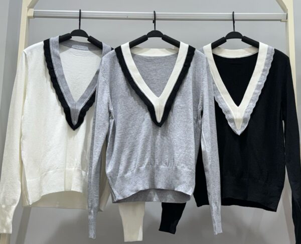 Sweater escote V con detalles en cuello. Calidad: Bremer
