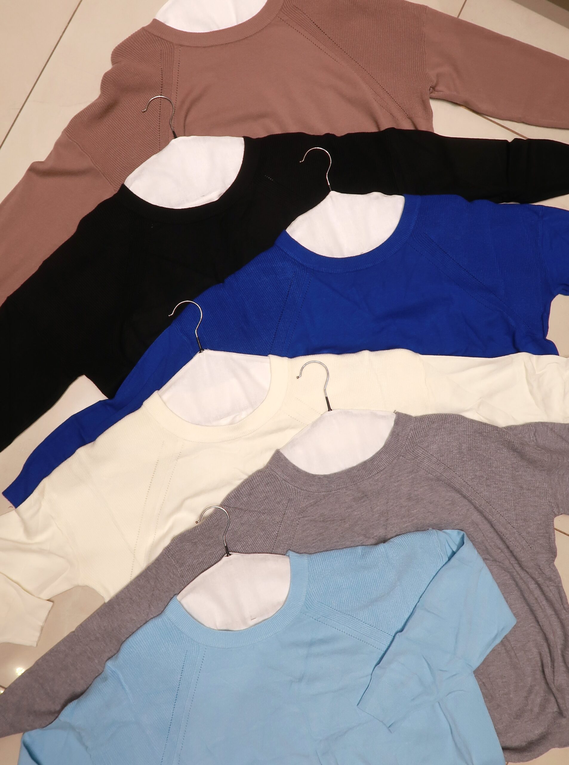 Sweater de hilo con lurex. Oversize manga al codo. Cuello redondo.
