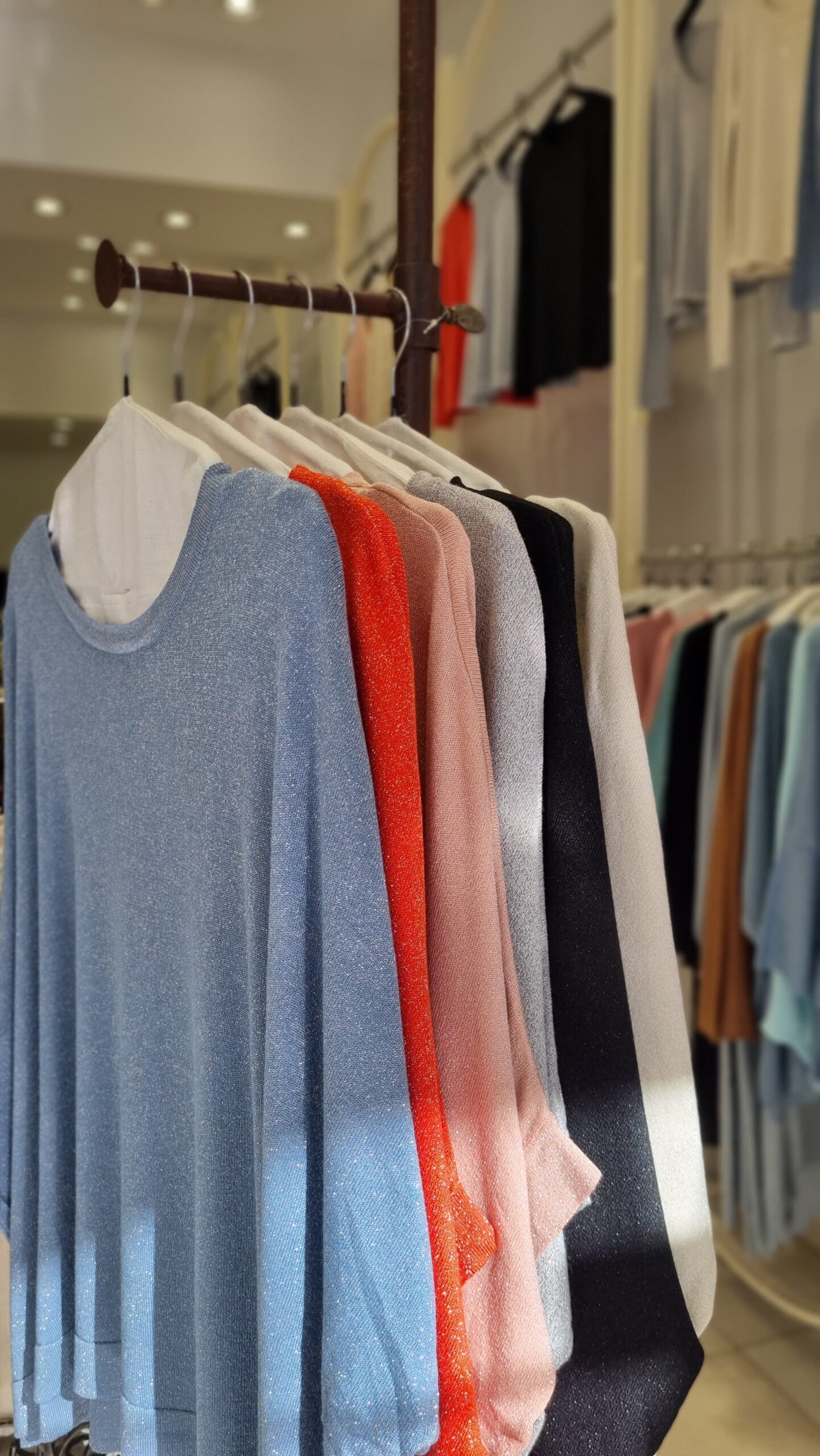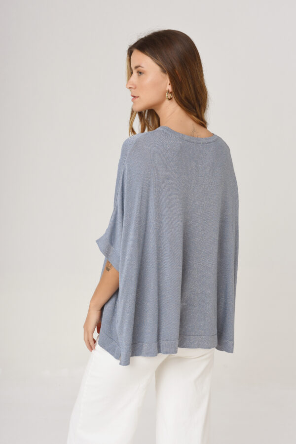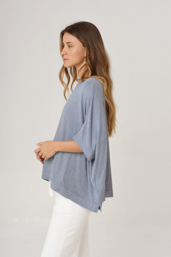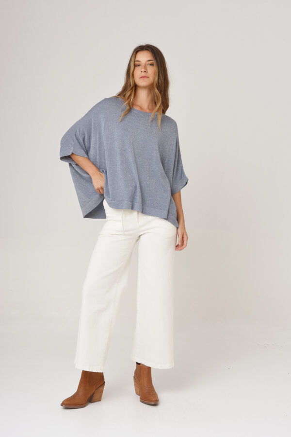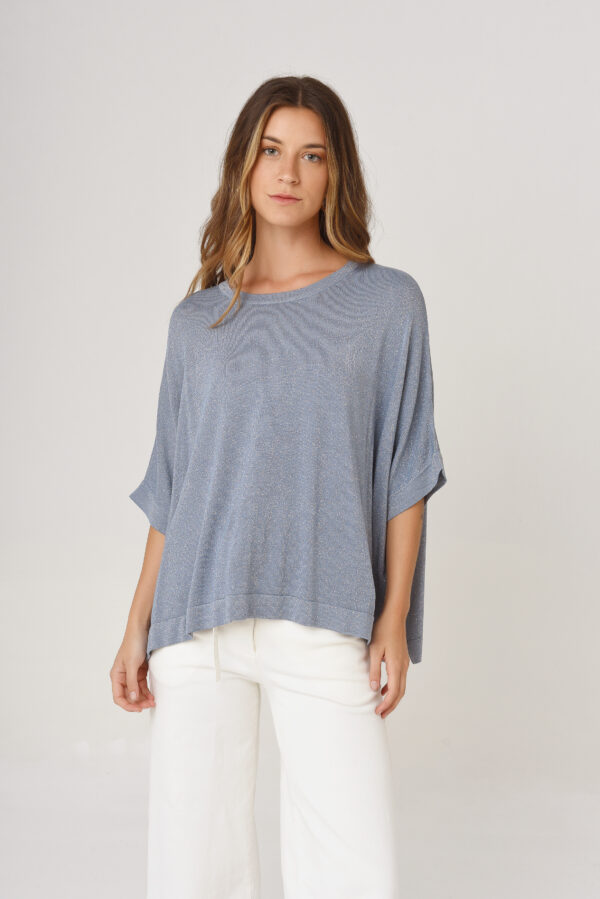 Sweater de hilo con lurex. Cuello redondo. Oversize. Manga al codo