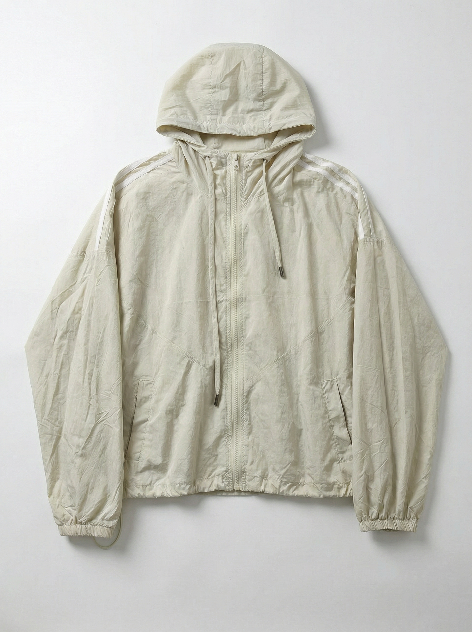 Campera de cuello subido con capucha ajustable. Manga larga y lineas a contraste en los hombros. Bolsillos en delantero. Bajo ajustable con elástico y stoppers. Cierre frontal con cierre.