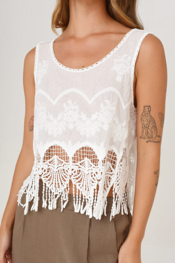 Saco de hilo con lurex. Cuello en V con botones. Calado.
