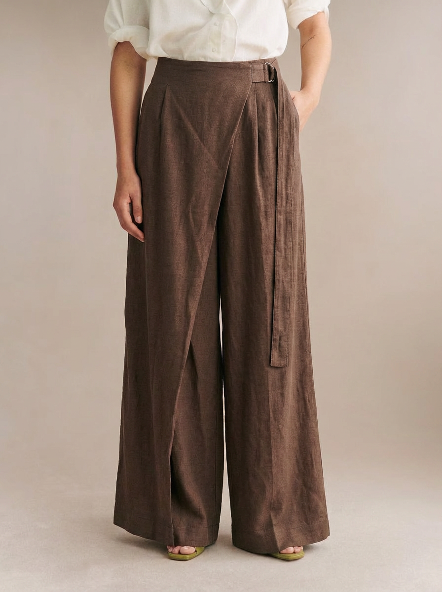 – Pantalón con tiro medio con cintura elástica en la espalda. Bolsillos laterales ocultos en costura. Detalle de banda lateral a contraste y pinzas delanteras.