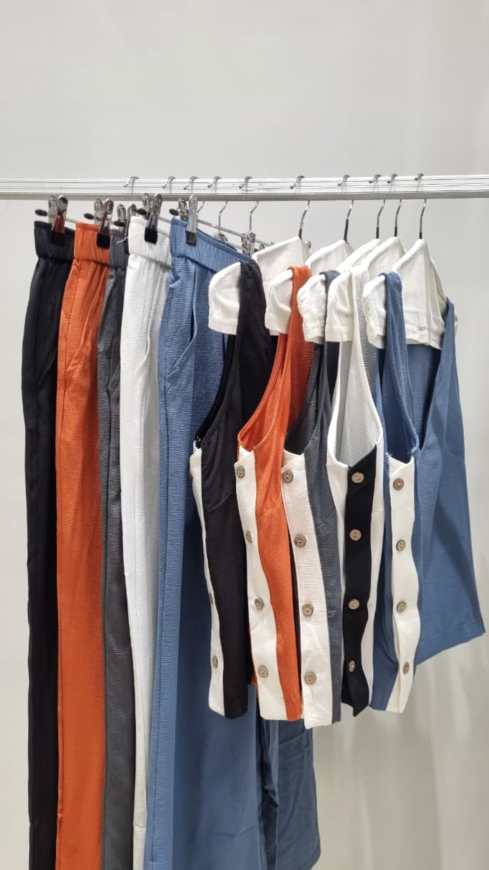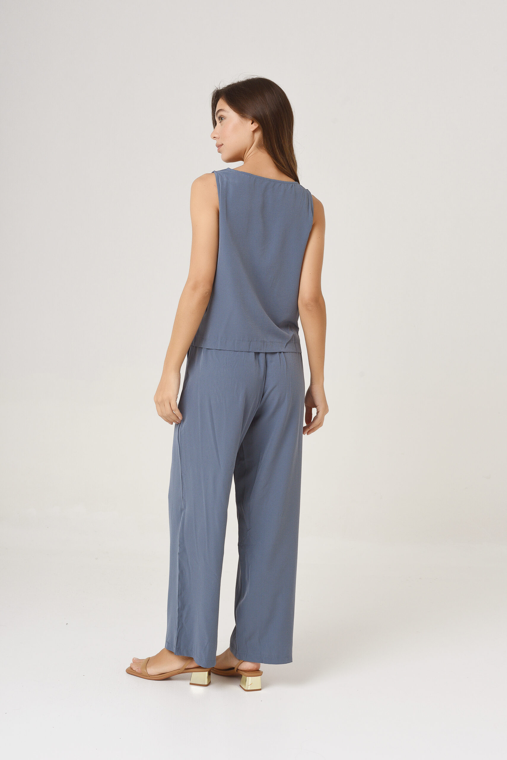 – Pantalón con tiro medio con cintura elástica. Bolsillos laterales y traseros ocultos en costura.