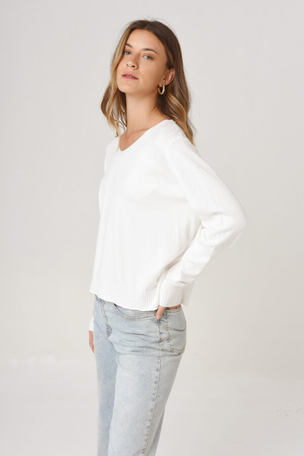 SWEATER CUELLO EN V CON UN CORAZON TEJIDO EN RIB EN EL PECHO