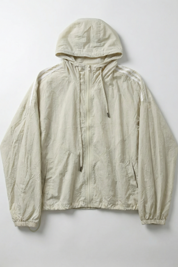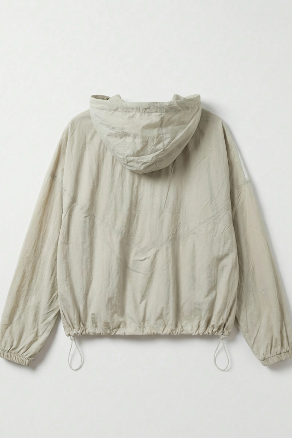 Campera de cuello subido con capucha ajustable. Manga larga y lineas a contraste en los hombros. Bolsillos en delantero. Bajo ajustable con elástico y stoppers. Cierre frontal con cierre.