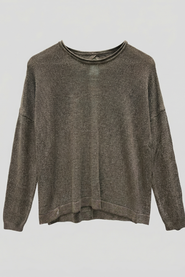 $25.000,00Sweater cuello redondo con varios tipos de calados y un poco de brillo en el tejido.